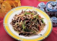 【菜名】 紫龙脱袍 【所属菜系】 湘菜 【特点】 鲜香味美,诱人食欲。 【原料】 鳝鱼500克,冬笋丝50克,红柿子椒丝30克,香菇丝10克,葱、姜丝各10克,香菜3克,鸡蛋液30克,盐2克,味精2克,淀粉30克,料酒30克,胡椒粉、香油、油各适量。 【制作过程】 (1)将鳝鱼去皮、骨、头,净膛洗净切6厘米长丝,用鸡蛋液、淀粉上浆。(2)起锅放油烧热,下入鳝鱼丝滑散,捞出控油。冬笋丝、柿子椒丝、香菇丝过油。(3)锅留底油,投入葱姜丝爆香,放入鳝鱼、冬笋、香菇、柿子椒丝、盐、味精及料酒,翻炒均匀,撒入胡椒粉,淋香油,放香菜即可。