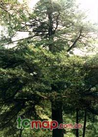 华东黄杉,松科黄杉属,为常绿针叶乔木,树形雄伟壮丽,气宇轩昂。黄山云谷寺古庙遗址左侧,有一株华东黄杉古树,据考证已有500年历史。树高18.4米,胸围2.65米,冠幅17.9×19.8米。树姿优美,树干端直,侧校发达,枝叶稠密。树皮灰褐色,有纵裂。叶线形,螺旋状排列。球果10月成熟,但所结种子,大多空粒,发牙率很低。徽州山区海拔600~1500米的局部高山地带,为其天然分布区。