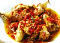 红军长征鸡是先将老鸡、土豆片、冬瓜片、胡萝卜片等煲稔后在鸡身上淋上豆瓣酱、剁椒等再蒸8分钟,味道香鲜,酸辣宜口。