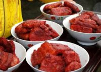 不一会功夫,一碗色泽鲜红、香气扑鼻的“杨桥麸子肉”便呈现在大家的面前。用筷子一夹,果真肥而不腻。细细品味,让人齿颊留香,回味无穷。