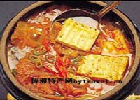 3、炒锅净后,放入25克豆油,烧热时,下入牛肉、葱末、姜末,煸炒几下,加少许水,再放酱油、盐、糖、料酒,汤沸后放入豆腐丁、胡萝卜丁、豌豆、味精,用淀粉勾芡,即可。