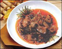 长寿街的蒸盐菜外观油黑发亮,闻之香气扑鼻,蒸肉清香爽口,做汤味道鲜美,深受人们喜爱。长寿蒸盐菜独具特色,与其选料精当,做工讲究很有关系。选料必须是当地种植的又大又嫩的青菜。加工时先洗净,晾干水后切碎,揉挤出菜叶茎中的水份,可略放点精盐,再晾晒。干后即放在木甑中蒸熟再晒。如此反复蒸晒三四轮,最多者甚至七蒸七晒。这样菜中的干物质已充分糖化,其质地远非一般盐菜可比。