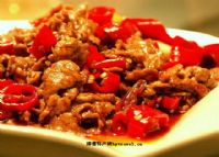 ②烧热锅,下油,烧至八成熟,倒入牛肉煸炒约2分钟,下绍酒、酱油,续炒片刻盛起。