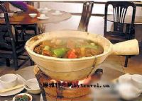 不腻,而饲料狗则全身是瞟,嘴腻无味。本地狗又以20—30斤重的家狗为佳,其肉质纤细,味正,而体大的狼狗肉质粗糙,有骚味。按人均8两或1斤为宜,先用香油炒干血水,然后泥锅盛之加上狗汤,适当放上一些药材,如草果、陈皮、红枣、丁香之类,切记要加二、三两蚝豉可中和也使汤味更鲜,猛火锅滚后再用文火慢炖,约30、40分钟,当狗肉软硬适中时,此时食狗肉最适宜。若时间短皮硬肉韧嚼不烂,时间长则肉烂没有什么嚼头,故要掌握好火候。会吃的人,都把第一煲汤分吃净尽,再另加狗汤煲汤自己爱吃的助食,譬如深薯、萝卜、香菇、针菜之类,最后便是煲西洋菜或生菜等青菜,以去腻滞。
