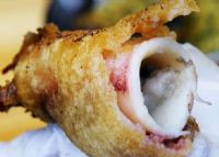 阳西儒垌镇离阳江大约80KM,白切鸭、鱼杩、鸭粥在当地是比较有名的美食,做鱼玛里面材料一定要新鲜,可以用鲜鱿鱼、蚝仔、鲜虾、鳝鱼的材料沾上面粉现点现炸,刚刚上油锅的鱼玛可香口了,沾点香料一吃美味就无法停口。哈哈!不过是油炸的吃多小心热气上火哦,记得准备好凉茶哦。