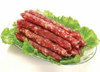 相传,始作腊肠的是大黄圃一卖粥档主,名叫王洪(人称老洪先生)。光绪十二年(1886年)冬季某天,天气奇冷,雪雨纷飞,王洪准备的肉料—猪肉、猪肝、粉肠卖不出去。王洪遂用盐、糖、酱油等东西把肉料腌起来。连天阴雨,王洪只好将粉肠掰衣,将猪肉切粒,塞进肠衣,用水草分截绑好。天晴,经数天的风吹日晒,王洪的制品,吃起来别有风味,且耐储藏。王洪继续如法炮制,设档出售。因此物是猪肉辅以肠衣制成,形如猪肠,故名腊肠。腊肠,以其独特的风味、耐储藏的特性,名声日噪,求过于供。大黄圃人争相仿制。后来,更有依照腌制腊肠的方法,用五花肉制成腊肉。