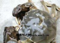 此蟹即潮汕膏蟹,学名叫锯缘青蟹,为广东潮汕的著名海产。膏蟹就是卵巢最丰满的雌蟹;已受精但卵巢不太饱满的雌蟹称“母”:略微饱满的叫“花蟹”;而雄蟹只供炒用,与未受精的母蟹统称“肉蟹”。捕自海中的雌蟹,卵巢饱满的不多,要进行人工育肥,使之成为“膏蟹”。养殖好的膏蟹,腿粗肉满,膏满脂丰,清蒸之后,鲜美异常,营养价值甚高。