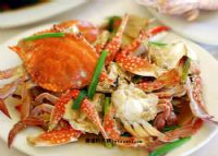 1.把螃蟹宰杀后,腹部朝上放菜墩上,用刀按脐甲的中线剁开,揭去蟹盖,刮掉腮;再剁去螯,每个螯都切成二段,再用刀拍破蟹壳,然后将每个半身蟹身再各切成四块,每块各带一爪,待用。 2.把炒锅用武火烧热,下猪油,烧至六成沸,即下葱头块,翻炒后,把葱头捞出,将油过滤;在炒锅内略留油底,上灶爆炒姜丝、蒜泥和炸过的葱头,待出香味时,下蟹块炒匀,依次炝料酒,加汤、食盐、白糖、酱油、味精等,加盖略烧,至锅内水分将干时,下猪油(10克)、香油、胡椒粉等炒匀,用湿淀粉勾芡,便可出锅。