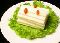 凉糕是渠旧点心糕类食品中的一个品种,精选粳米研磨蒸制,口感脆、滑、甜、凉,软糯醇香。配以番茄、辣椒等食材熬煮的酱料,开胃爽口。凉糕其性温和,不凉不燥,老少皆宜,具有清热解毒、润燥护肤、养颜提神之功效。