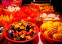 山楂、桃子 、菠萝、石榴、木瓜、芒果、哈密瓜、杨桃、草莓、山梨、苹果、李子、马蹄、密猴桃。