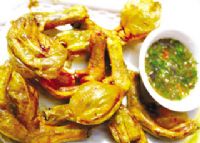 最早创出带皮鸭脚这一吃法的李文松说,这个鸭脚先得加入特殊配料熬制让其入味,再经过两炸两抛,薄薄的鸭脚皮被炸成皮肉分离并鼓起来,当鸭脚颜色变得金黄即可出锅,搭配同样是他特制的酸卤、香脆的鸭脚皮、弹性十足的鸭脚筋、爽口的鸭脚骨,会让你吃得嘴巴啧啧香。