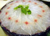 将萝卜,红椒、姜、葱、芹菜、咸萝卜干洗净,切成细丝,萝卜丝控干水分,蒜头、 酸杨桃切薄片,芜荽切段,装盘成配料。(既可以杀灭细菌,又可以去腥味,使其入 口鲜甜) 4.把风干了的鱼肉横刀切成薄片置篾饼上,鱼皮切碎围边,均匀撒上熟芝麻,胡椒 粗末,进食时佐于酱料配料。