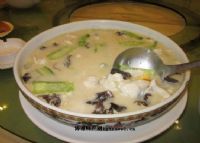 五彩鱼片羹采用新鲜鱼片并佐以野生黑木耳、银杏、南瓜、丝瓜等配菜,经过精心熬制后,做出鲜甜浓白的鱼汤,因配菜五颜六色,故整个菜的出品可为是色香味俱全。