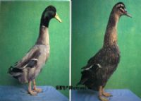 建昌鸭体躯宽阔、头大、颈粗为其显著特征。公鸭头、颈上部羽毛墨绿色,具光泽,颈下部多有一白色颈圈;尾羽黑色,2~4根性羽向背部卷曲。前胸和鞍羽红褐色;腹部羽毛银灰色;喙黄绿色,故称“绿头、红胸、银肚、青嘴公”。胫、蹼橘红色。母鸭以浅褐麻雀色居多,占65~70%。喙橙黄色。胫、蹼多数橘红色。建昌鸭中约有15%的白胸黑鸭,公母鸭羽色相同,前胸白色,体羽乌黑色;喙、胫、蹼黑色。