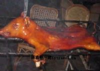 把不喂配合饲料的二十至三十斤之内的小猪儿放血、褪毛、烤皮、洗净后、宰成小块,用清油将其与土豆片、南瓜片、蘑芋片、豆腐干、饵块及韭菜等蔬菜搅拌,分装在盆里。烧好火红的炭火,架上烧烤架,调配好由辣椒面、花椒面、食盐、味精、芝麻等拌和而成的佐料,按照个人的口味挑选自己喜欢的食物放在烧烤架上翻烤,待烤熟后蘸佐料食之,吃起来倍感香味扑鼻,回味无穷。