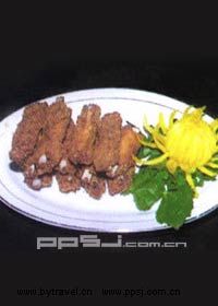 “知味停车闻香下马沽酒客来风亦醉”、“美食佳肴高朋雅会欢宴人去路还香”,这是会理石榴园餐厅大门上的对联,同时也是对石榴园餐厅的真实写照。餐厅同楼亭雅阁、假山流水、曲径通幽。金沙大排就为该餐厅所独创。此菜色泽金黄、形态美观,集香、酥、脆为一体,是一款不可多得的佐酒佳肴。是会理县不可多得的一份名菜。