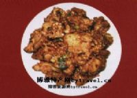 大凡来到丽江地区宁蒗县(俗称小凉山)的游客,都要品味一番彝族的 砣砣肉。小凉山彝族的砣砣肉类似新疆的“手扒羊肉”,在制作上,一 般是用鲜活肥硕的猪、牛、羊,立即宰杀后,大块剁颐,小者如拳、大 者如碗,不放椒盐,氽入清水中煮至六成熟后,再放在筛簸之中轻轻撒 上一层盐汗水沫,吃时佐以小凉山土法腌制的一种干酸菜汤(有克油腥 的作用),将砣砣肉抓在手上,边啃边嚼,由于这种肉做法特别,又不 是很肥,吃起来越嚼越香,越吃越胃口开,所以,砣砣肉如今已成为小 凉山的一道很有名气的风味菜。( 丽江)