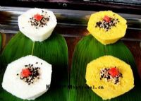 蒸时,用特制的烧水锅置于旺火上,专用木模放于锅面的气孔上,待气冲出时将米粉舀入木模,上气后放化猪油适量,加盖蒸熟,挑入盘内,撒芝麻桂花糖即成。iTL