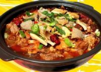 原料:牛毛肚250克、牛肝100克、牛腰100克、黄牛背柳肉150克、牛脊髓100克、鲜菜、牛油300克、豆瓣、姜末、辣椒、花椒、料酒、豆豉、醪糟汁、精盐。