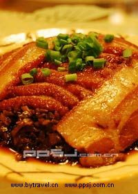色泽红亮,咸鲜味浓,趴软适度,肥而不腻。