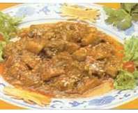 制法:1)茄子去皮剞上花刀,切成4厘米长、2.5厘米宽、2厘米厚的块。2)锅内油烧至六成热时,放入茄块炸透、炸软熟捞起。3)锅内倒去多余的油,下泡红辣椒末,炒出香味,油呈红色,再下姜、葱、蒜炒香,然后加汤,