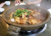 石锅采藏珠峰奇石,高僧讼经手工打制成锅,取巴河之水美肥鱼,舀一勺甘泉溪水,烹煮出巴蜀一绝)——石锅鱼。石锅煮鱼可使鱼鲜嫩无比,石锅可使锅中之鱼保持衡温,能够保持鱼的原味,食此鱼美容养颜,生津脾肺、延年益寿、强身健体。