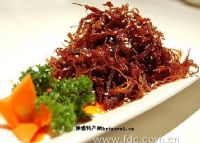 清光绪年间,四川梁平县有个姓刘的人流落到达县,以烧腊、卤肉为业。最初,他制 作的五香牛肉片厚肉硬,吃时难嚼,且易塞牙,销路不畅。后来,刘氏日思夜想,逐 步加以改进,将牛肉切得又大又薄,先腌渍入味,再上火烘烤,卖时还淋上香油。这 样制作出的牛肉酥香可口,在市场上大受欢迎。刘姓商人生意兴隆,并因此而发家致 富。其他人见有利可图,纷纷仿制,灯影牛肉逐渐成为四川一大名产......( 成都)