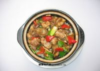 淘洗好的米,放入砂罐,放上适量的水,然后加上荷叶盖上罐盖,把饭闷至半熟后加猪肉,辣椒,然后煮到饭熟,取出、揭盖即可。如加入三鲜料、火腿等即成不同口味。Wns
