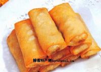 1、制春卷皮。面粉、鸡蛋清、精盐、明矾加水调匀成稀浆面团,以不粘手为佳。将平锅放于文火上将面团在平锅面上粘揉成春卷皮(做时加少许化猪油炙锅)。