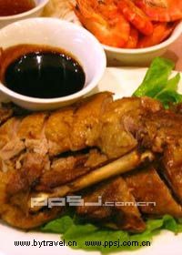 香酥鸭,外表焦黄,十分酥脆,入嘴即化。鸭皮自然是其中精华,香,嫩,微带韧性,回味无穷,全在一个韧字上了。鸭肉成丝,轻轻一咬,可以撕开来,有别于其它烤鸭的油性十足,反而以香酥取胜。