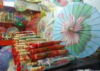 1.工艺流程:选料→伞件制作→组装→穿绞、网伞→扶伞、烤伞→上油。