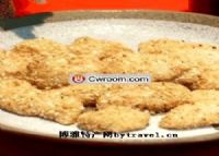 1、制丝、炸仿丝:将上等糯米淘净,浸泡3~4天后捞起磨浆,经吊干蒸熟,搅拌好后,切丝晾干。然后,将化猪油烧沸到120-140℃,将仿丝分批放入锅内炸制,炸至丝子浮出油面1.5-2分钟,捞起滴干油,待用。5n4