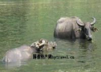 水牛头部长短适中,前额平坦较窄,眼大,稍突出,口方大,上下唇吻合良好,鼻孔大,鼻镜黑色(白牛肉色),耳大小中等,生于角基后方,角基方形,上部渐成圆尖形,向左右平伸,呈新月形或弧形,髻甲隆起,宽厚,肩胛倾斜适中,胸宽而深,肌肉发达,背腰宽广略凹,腰角粗大突出,尻斜后躯发育较差,尾粗短,四肢粗壮,前肢开阔,后肢多呈S状,系部干燥,角度适中,母牛乳房呈碗形,乳头短小,乳静脉不够明显。公牛第二性征不明显。