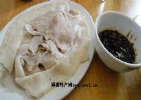 这对于下一程序的刀工片制白肉至关重要。将“二刀肉”刮洗干净后,用冷水将肉下锅。煮的过程中,经常除去煮出浮在水面的血沬,还应保持摄氏90度水温,即水沸时就加凉水,使肉从外到里受热均匀。若水温过高,就会出现皮粑肉生的现象,影响成菜。煮约30分钟,用竹签刺进肉内无血水冒出时,表明肉已断生至煮熟。就将肉捞起放在凉开水中浸泡,以防“结皮”影响刀工片制。
