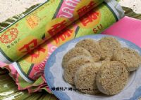 特粉制成半烫面,冷却后加发面纯碱适量揉匀成皮;特粉制成酥面,下盐、花椒粉适量。取皮包酥,制成酥皮,分件包酥成圆饼形,沾上白芝麻,入炉烤熟,饼沿用刀开一小口,掏去内包酥面,装盘即成。