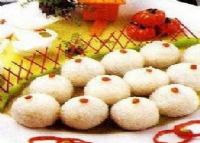 灯草糕是四川省历史悠久的糕食品种。糕条雪白细软,状似灯草,故名灯草糕。制品纯甜清香,物美价廉,很受群众特别是老年人和儿童的欢迎。原料配方:搅糖27.5公斤回粉22.5公斤色素按国家标准制作方法:1.回粉:糯米浸泡后滤干,以砂拌炒,再粉碎成细粉,并用100眼筛子过筛。然后置于专设的湿度较大的环境中吸收水分,成为回粉。2.搅糖:搅糖中川白糖占90%、花生油5%、饴糖5%,同“花糕”中搅糖的制作方法。3.糖粉:搅糖与回粉混合,反复滚压,用60眼筛过筛。4.装盆:用专用方形锡盆。将糖粉装入锡盆后压紧,并用铜镜走平,再按规格切成块状。5.炖精:将糕盆置于热水锅内搭气(需加盖),水温80~90℃,时间10分钟左右。糕体微有热度时倒出,侧置于“气板”上,于锅内再搭气(行语“搭倒气”),水温60~70℃,经5~6分钟后,即起锅冷却。6.成型:将糕体两端着红色,静置12小时左右,即可成型。成型时先切成厚约1.5毫米的薄片,后切成方形丝条,即为成品。质量标准:规格:条状,形似灯草,粗细均匀,体形完整。色泽:糕体白色,两端红色。组织:软绵,细腻,无杂质。口味:纯甜,并有糯米粉香味。