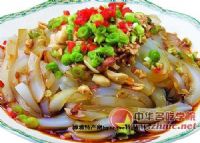 操作要领:掌握好石灰水的用量;掌握好各种凉粉的切法和调味。
