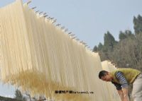 “离夫”——小麦磨成粉离开了麦麸;“打扮搽油”——合面时在案板上打扮(拌)搓揉,合揉面团需不时抹清油;“光棍”——面条成型后,两端各用一根小棍挑着,上高架凉晒脱水、继续抻长;“摆动风流”——一根小棍插在高架上,另一根垂于下面,面条随风摇摆,婀娜多姿;“天长地久”——高架上的面条一端高耸云天,另一端下垂地面;“刀切两头”——面条不需几日凉干后,切掉两头靠小棍处的“面头子”,包装为一把把的成品。这些“下里巴人”们,倒也不乏罗曼蒂克,把枯燥的劳作,演绎成了“做面咏叹调”。真个是“文艺作品源于生活”啊!URU
