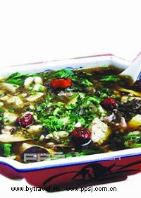 “夜不收”荤豆花:白嫩嫩的豆花儿,绿绿的香菜葱葱儿,红红的小辣椒儿,青青的泡青菜儿。哎呀呀!闻着香,看着美,一勺入嘴,举筷豪吃……哎!那美味,咋个说:简直美的不摆了!一钵荤豆花,豆花、肉馅、蔬菜、辣椒啥都有,做工和配料是按酸菜鱼的整法来弄的,不吃都能品出三分。不一样就是不一样,和你平常吃的豆花不一样。鲜、嫩、酸、辣、麻……这些味道都有!味道好,不逊色于重庆名片火锅。