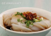 荞凉粉是贵州省的一道名小吃,是男女老少都喜爱的一道小食。全省各地均有荞凉粉,但以织金荞凉粉最具特色。荞凉粉是用荞麦打去壳,干磨成粉按1:4的比例加水和适量的明矾水调匀,下锅用微火慢慢边煮边搅,煮熟冷却而成。食用时翻倒出来放在案板上,用特制的刮子把荞凉粉刮成细长条装在盘子里,用另一小碗放入酥黄豆、酸萝卜丁、黑大头菜丁、芜荽、葱花、红油、麻油、花椒油、自制腐乳、酱油、醋、姜汁、蒜水、味精等调料兑成蘸水,用荞凉扮蘸着食用。