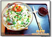 酸汤肉末粉:肉末用猪油炒熟装盘备用,酸菜切成碎段加酸汤煮开备用,煮粉时不用鸡汤改用酸汤加肉末即可。