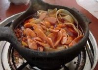 夺夺粉是一种特色鲜明的小吃,用沙锅盛放,一锅经过特别调制的味道浓厚的底汤,在小火上慢慢煮食多种配菜,例如蔬菜类,瘦肉类,熟食类,但凡你喜欢吃的可口食物,都能煮在里面细细品尝享用,独特的麻辣味或特有的酸辣味之中更是香气四溢,品不释口,回味无穷!