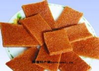香煎黄糕粑是将黄糕粑切成1厘米厚的片,放入平锅中用油煎至两面脆,装盘即成。