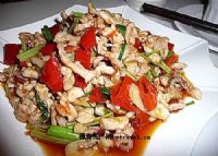用料:猪板筋200克,泡椒50克,蒜苗50克,调和油200克(实用40克),盐、酱油、白糖、味精、嫩肉粉适量。