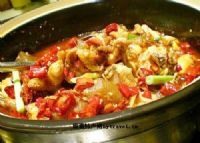 做法:把鸡砍成均匀大小,勾芡,放盐,拌匀腌制好搁一边备用。油烧至六成熟,鸡块下锅,爆炒至几乎看不到血色,鸡肉基本成熟时装入高压锅,中火焖6~8分钟后离火。再放油烧至七成热,下糍粑辣椒,辣椒熟后,放入豆瓣酱,大蒜,炒至香气四溢,焖好的鸡肉倒入锅内,一起拌匀,加姜块,盐,花椒,胡椒粉,酱油,待入味后起锅装盘。
