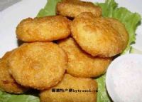 原 料:面粉500克,菜油50克,水350克,老面25克,碱适量。   调 料:白糖、芝麻、花生粒、糕粉、玫瑰糖等适量。   制作方法:炸。锅先烧水,加入熟菜油后烧开,撒入面粉在锅中边搅边烫熟。起锅后放凉再加入老面发酵,然后加适量的碱中和揉匀揉透,制成“全烫面团”,将白糖、芝麻、花生米、玫瑰糖等制成白糖芝麻馅。将揉匀揉透的面团下成10个剂子,包入馅心,搓圆后压成圆饼状,下入7、8成热的油锅中炸成金红色,熟后即成,   风味特色:色泽金红,外脆内软,馅心甜香、此品种为贵阳传统小吃。   技术要领:搅面时要顺一个方向搅,炸面坯时用菜油炸,色泽才红。( 贵阳)