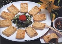 去贵阳,吃到了当地有名的风味小吃——“恋爱豆腐果”。其实这就是一种烤豆腐,但在形色上、制艺上非同寻常:其主料是切成长方形小块的白豆腐,先经过适量碱水的漂洗,然后浸泡一夜以上,至微微发酵,烘烤时膨胀鼓起,放在有眼铁片上烤制而成。吃时用小竹片将豆腐果从侧面剖开,填进以折耳根、苦蒜、香葱、木姜子油、糊辣椒、酱油、味精等制作的醮水。趁热咬下,外脆内嫩、咸辣爽滑,满口喷香。特别是在寒冬,几块下肚,额头上便沁出一层毛汗,那种享受才真叫安逸。“恋爱豆腐果”,这名吃的来历,源于抗日战争时期发生在贵阳的一个浪漫故事。