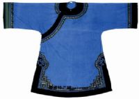 水族女服多以水家布缝制,无领大襟半长衫或长衫。长衫过膝,一般不绣花边。而节日和婚嫁盛装与平时截然不同。婚礼服上装的肩部一圈及袖口,裤子膝弯处皆镶有刺绣花带,包头巾上也有色彩缤纷的图案。头戴银冠,颈戴银项圈,腕戴银手镯,胸佩银雅领,耳垂银耳环,脚穿绣花鞋。新娘子往往被打扮的花枝招展,风采翩翩。此外妇女刺绣的背带更有艺术性。说是“带”,实际上是一块刺绣华丽的“T ”形“帘子”,上端两边有带,“帘子”的大小可包住幼儿。它是将白色马尾缠绕上白丝线,再加上其它彩色丝线,先把各种图案分别刺绣好,最后将绣好的图案拼镶到背带布料上做成的。背带美观实用,是母亲对出嫁女儿最好的礼品。
