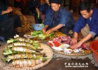 欢迎你到黔南来,尝一尝水族的第一名菜“鱼包韭菜”。