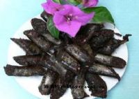 贵州的男女老少大都喜欢吃狗肉,每当宰杀本地肉狗时,狗的脊背部分不易处理,即这部分的肉与骨不易分离,若丢弃亦可惜,于是,人们便将狗的整条脊背(即从颈部至尾根部)去皮后剁碎,有的还用石碓舂(即单腿用力踏碓杵的后端,使碓仟上下起落,利用下落所产生的力将狗脊舂成茸泥),然后将这些茸泥拌以鲜薄荷、香芋等香料,然后一并灌进洗干净了的狗肠内,放在锅里用旺火煮一小时左右,熟后捞出,切成长4公分左右的小段即可,吃时蘸辣椒碟。